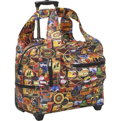 81687 Features: Large hall pocket. Front-closure issue. -Two outside pockets with zipper on two aspects. -Great interior. Fully-lined with polka dot lining signature. Tear-, padded laptop pocket. Four slide-pockets. Smooth-rolling wheels. -Push - button handle lock for easy maneuverability. -Dimensions: 17''L x 10''D 15''x.