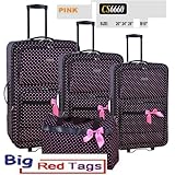 CS6660 PINK CHARLIE SPORT POLKA DOT LUGGAGE BAG 4 pcs by BIG RED TAGS